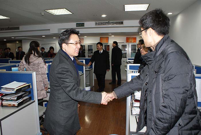 ????????在馬年春節(jié)長假后的第一個工作日,集團(tuán)董事長黃宏亮等領(lǐng)導(dǎo)一行來到我司向廣大員工拜年,他們深入各部室,與員工一一握手,送來了誠摯的新年祝福。