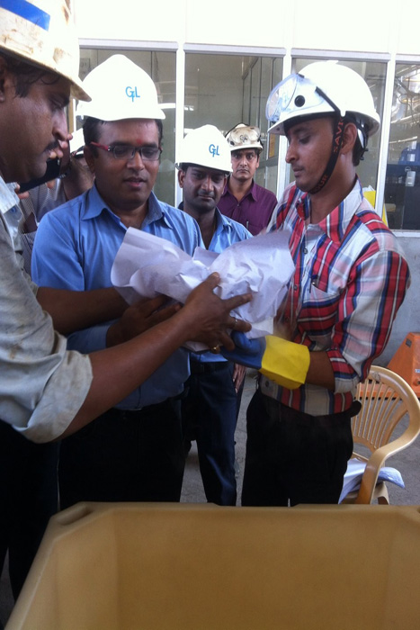 ????????項目現(xiàn)場坐落于古老的阿拉伯海岸,位于印度大沙漠之南。我司工作人員冒著四十多度的高溫,每天十幾個小時地辛勤工作,歷時兩個半月完成了項目的所有安裝、調(diào)試及試車工作。4月5日首批液體CO2產(chǎn)品及4月14日首塊干冰的生產(chǎn)及每一個里程碑式的進展充分體現(xiàn)了海企人吃苦耐勞、拼搏進取的精神。