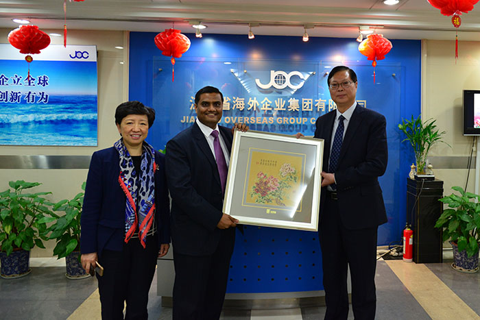 ????????海企技術(shù)公司總經(jīng)理林敏女士等帶領(lǐng)總領(lǐng)事一行參觀了公司,并對(duì)公司與印度的經(jīng)貿(mào)合作、公司企業(yè)文化以及未來(lái)能源、環(huán)保及新材料等領(lǐng)域的發(fā)展規(guī)劃進(jìn)行了介紹。集團(tuán)董事長(zhǎng)黃宏亮先生就“十三五”規(guī)劃與總領(lǐng)事進(jìn)行了雙邊貿(mào)易的探討,并期待海企與印方的全方面合作??傤I(lǐng)事Prakash Gupta也表示,在印度莫迪政權(quán)提出以“Make in India (印度制造)”為號(hào)召的產(chǎn)業(yè)振興政策之后,印方迫切的希望加強(qiáng)與中國(guó)的經(jīng)貿(mào)合作,并邀請(qǐng)我司參加2016年1月13日在上海舉行的“Make in India”中印商務(wù)峰會(huì),期待與我司展開進(jìn)一步更深層次的合作。