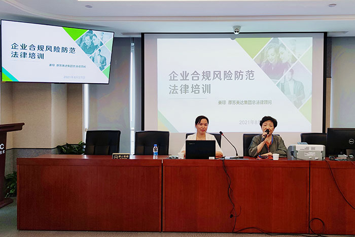 ????????2021年8月27日下午,公司領(lǐng)導(dǎo)組織安排了以“企業(yè)合規(guī)管理及風(fēng)險防控”為主題的專題培訓(xùn)。本次培訓(xùn)由原蘇美達集團總法律顧問姜瓊女士主講。公司領(lǐng)導(dǎo)高度重視,總經(jīng)理室及全體中層以上干部全部出席了此次培訓(xùn),各貿(mào)易部門均派員參加,此次培訓(xùn)參訓(xùn)部門覆蓋率近90%。