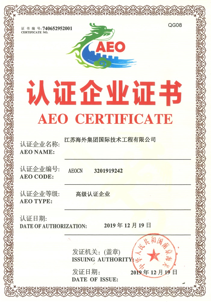 海關(guān)高級(jí)認(rèn)證 企業(yè)證書 (AEO)