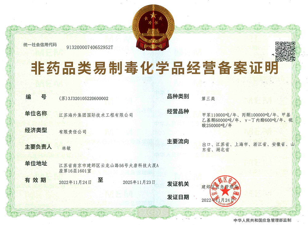 非藥品類易制毒化學(xué)品經(jīng)營(yíng)備案證明